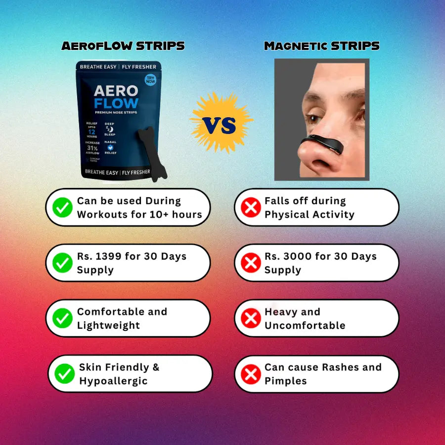 AeroFlow Nasal Strips use gentle spring-like tension to widen your nasal passages, reducing resistance and boosting airflow. Backed by physics and clinical studies, they help ease congestion, improve breathing during...