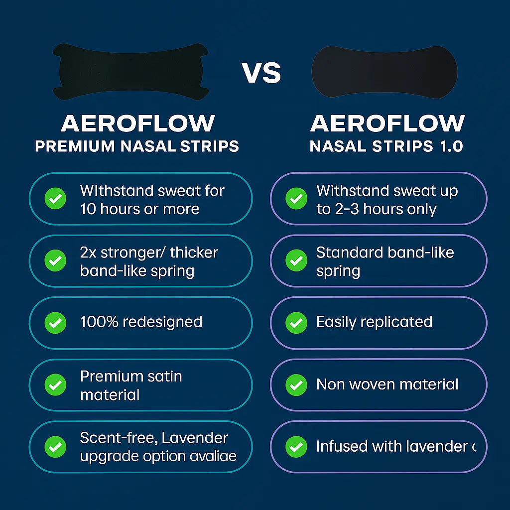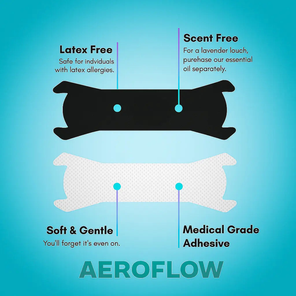 AeroFlow strips are crafted from premium medical‑grade adhesive and a flexible ergonomic design that gently lifts nasal passages for a secure fit.